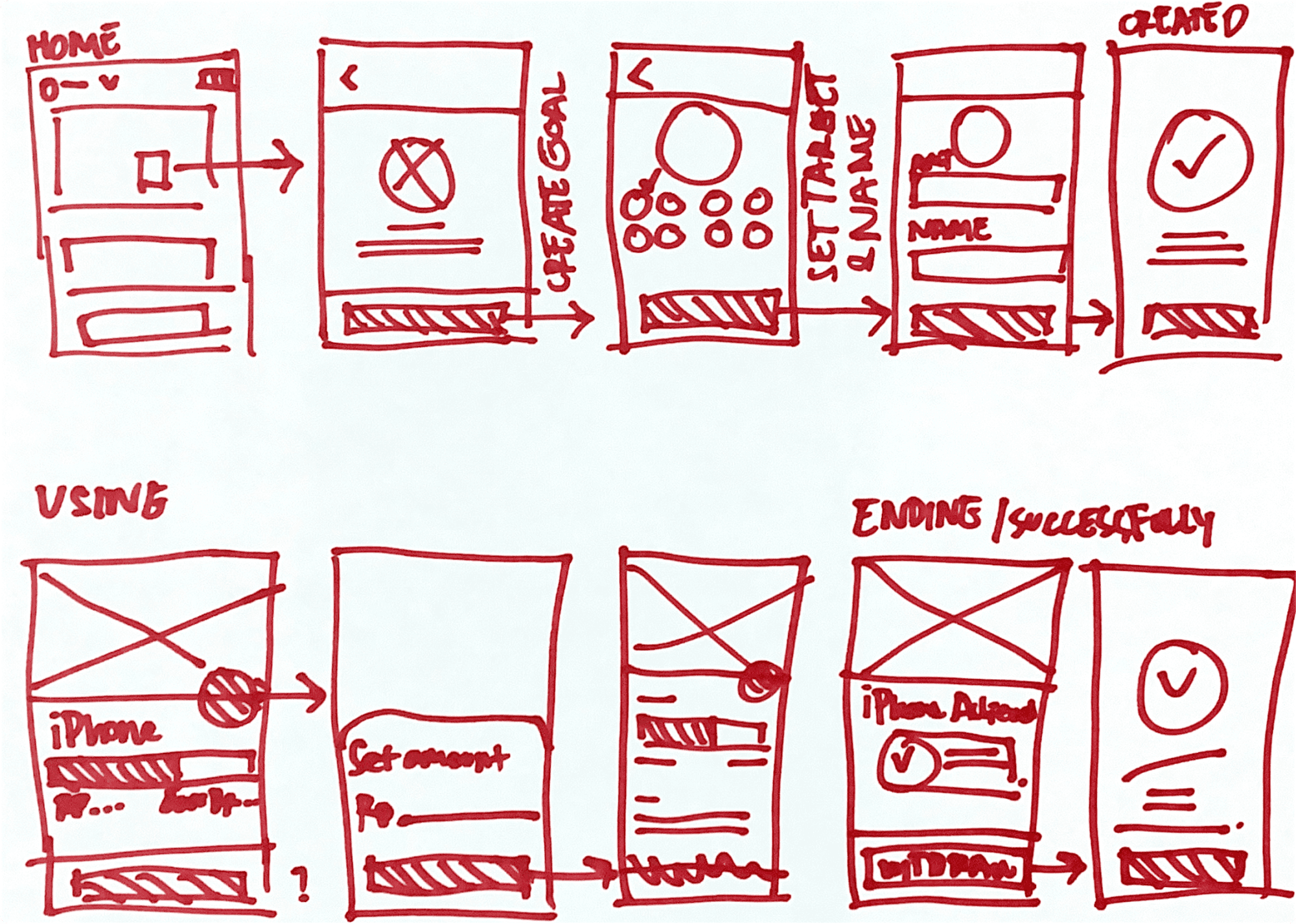 After a session of mini design sprint, I drafted the first wireframe of DANA Goals. The idea is very simple: to create a goal-based savings. That's it, until my insecurity crept in that this straightforward approach won’t be able to hook the users to save consistently. Promos and discounts attract lots of user, what we want is to bring stickiness and more habitual behavior.
