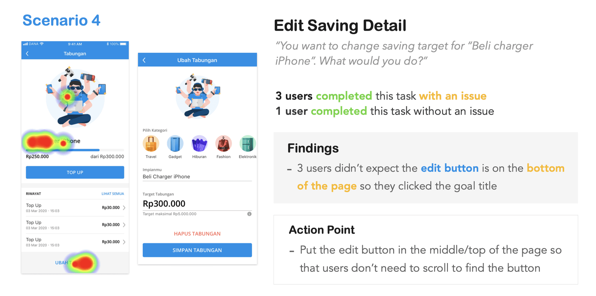 Our user testing involved 4 UT (Usability Testing) sessions with two distinct user segments: domain experts in digital banking and individuals with goal-based saving behavior. During one of the sessions, a respondent expressed frustration over the inability to find an option to edit their goal.