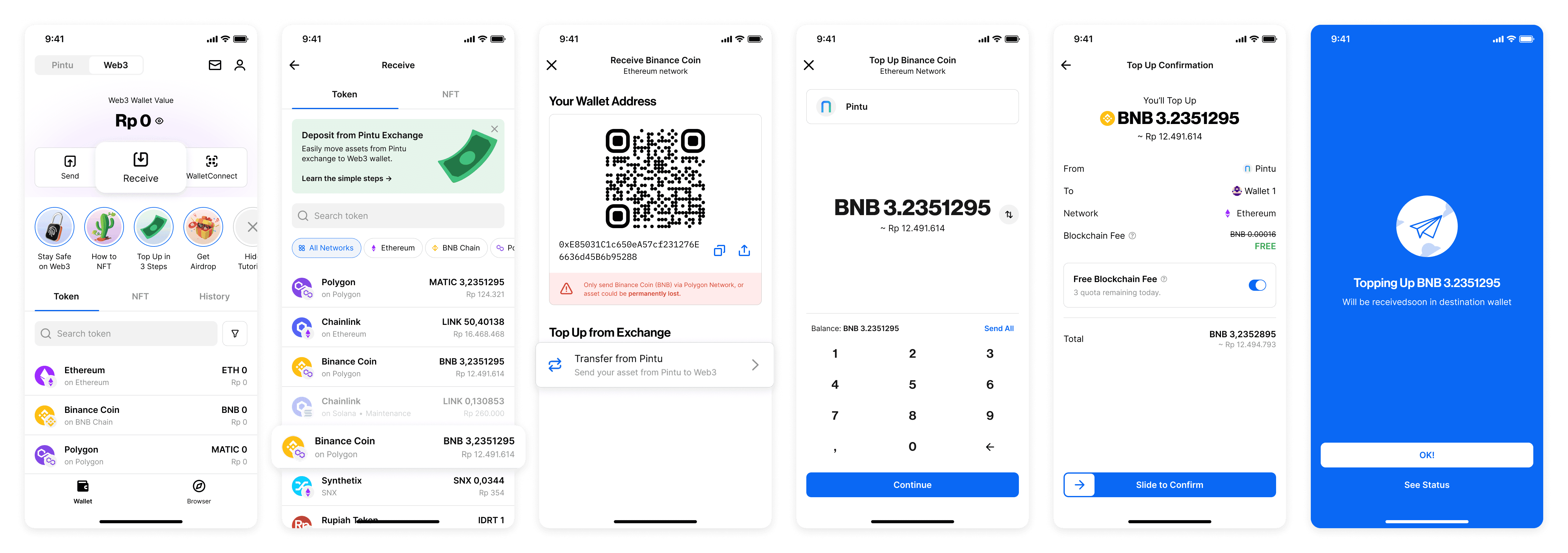 Top-up in 5 taps directly from your Pintu balance—no copying wallet addresses, no bridge, no stress.